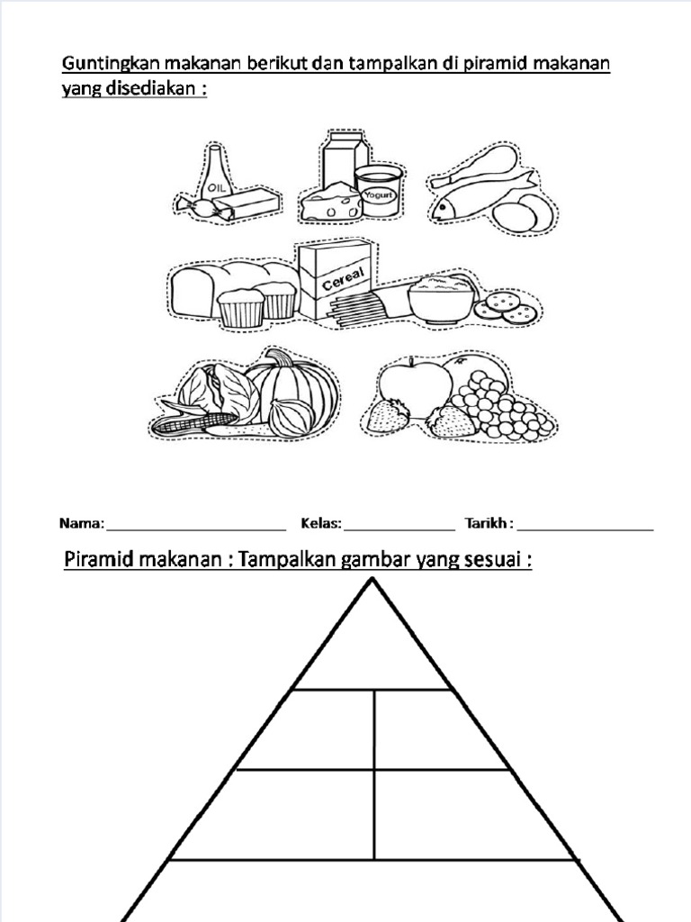 Lembaran Kerja Piramid Makanan Pinggan Makanan Seimbang Worksheet