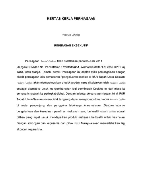 Cadangan Kertas Cadangan Perniagaan Jan 2019