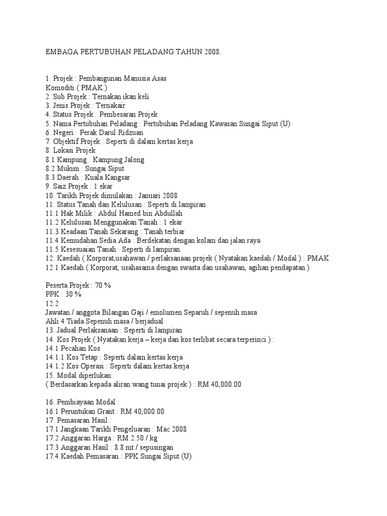 Institut latihan perindustrian sandakan jabatan tenaga manusia kementerian sumber manusia kertas cadangan nama program lawatan sambil belajar sesi 12019 tarikh 01 hingga 03 januari 2019 tempat institut latihan perindustrian sandakan anjuran pelajar teknologi telekomunikasi. Format kertas cadangan proposalkertas kerja 1. ISI KANDUNGAN Tajuk Penghargaan Abstrak Isi Kandungan Pengenalan Objektif Kajian Latar Belakang Kajian Kaedah Kajian Dapatan Kajian Rumusan Rujukan Lampiran PENGHARGAAN Pengkaji ingin mengucapkan syukur kepada Tuhan kerana atas limpah kurnia-Nya pengkaji dapat menyelesaikan tugasan ini dengan sempurna.